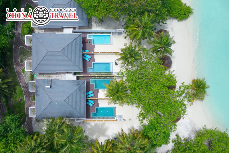Это самый большой по территории (1600 м х 440 м) и номерному фонду (462 номера) отель на Мальдивах.